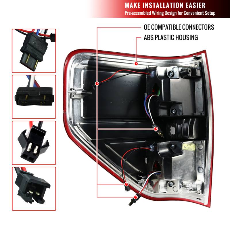 Spec-D 2009-2014 Ford F-150 LED Tail Lights - OZ (Chrome Housing/Red Clear Lens)