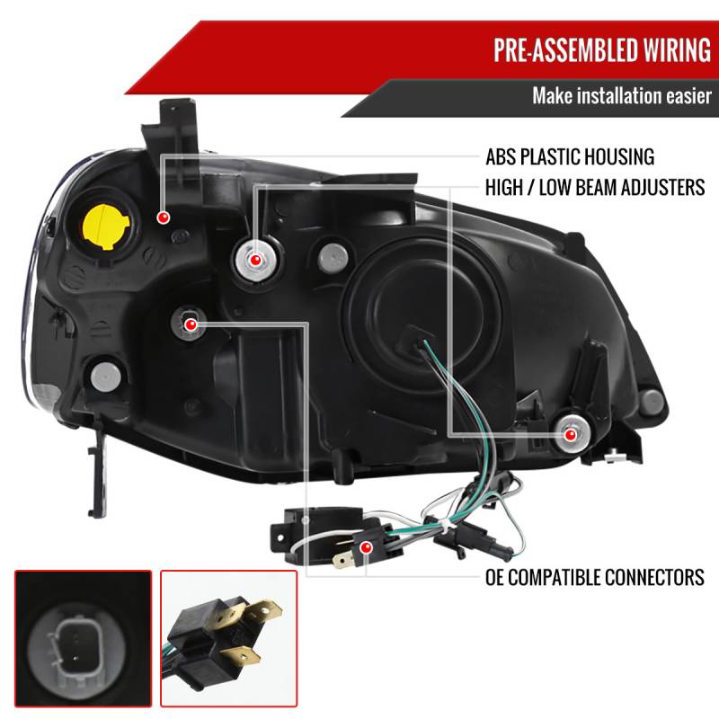 - All wiring for headlights are pre-assembled for essential plug and play application