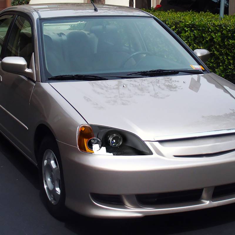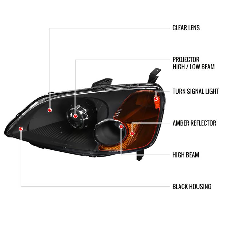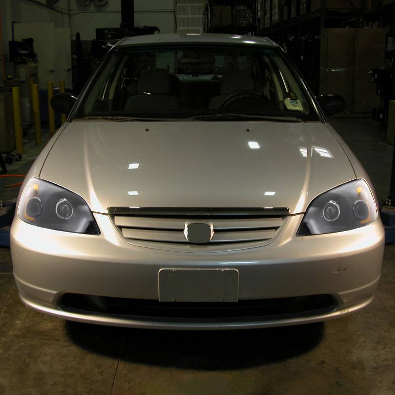 2001-2003 Honda Civic Projector Headlights w/ H1 Bulbs (Matte Black Housing/Clear Lens)