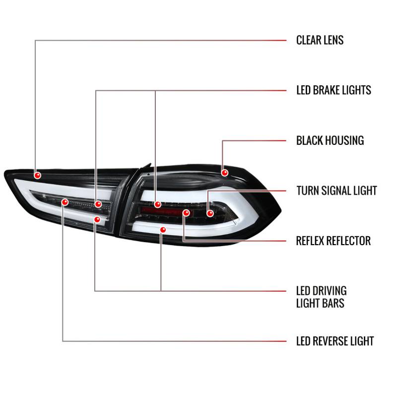 Spec-D 2008-2017 Mitsubishi Lancer / 2008-2015 Lancer EVO X Sedan LED Tail Lights (Matte Black Housing/Clear Lens)