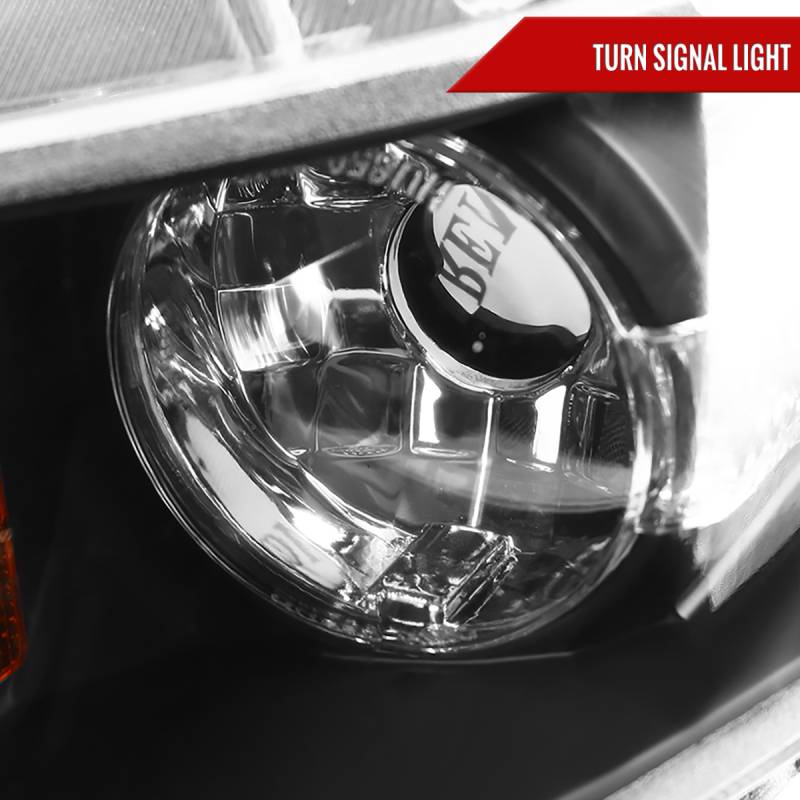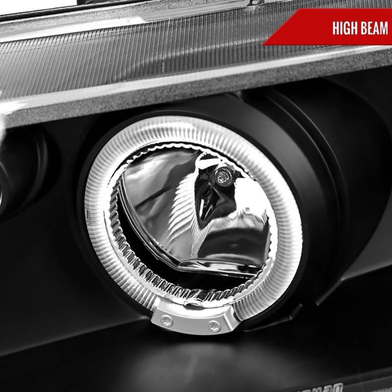 - Matte black housing, clear lens dual halo projector headlights with LED accent lights
