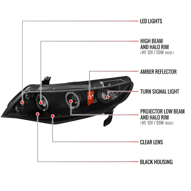 2006-2011 Honda Civic Sedan Dual Halo Projector Headlights (Matte Black Housing/Clear Lens)