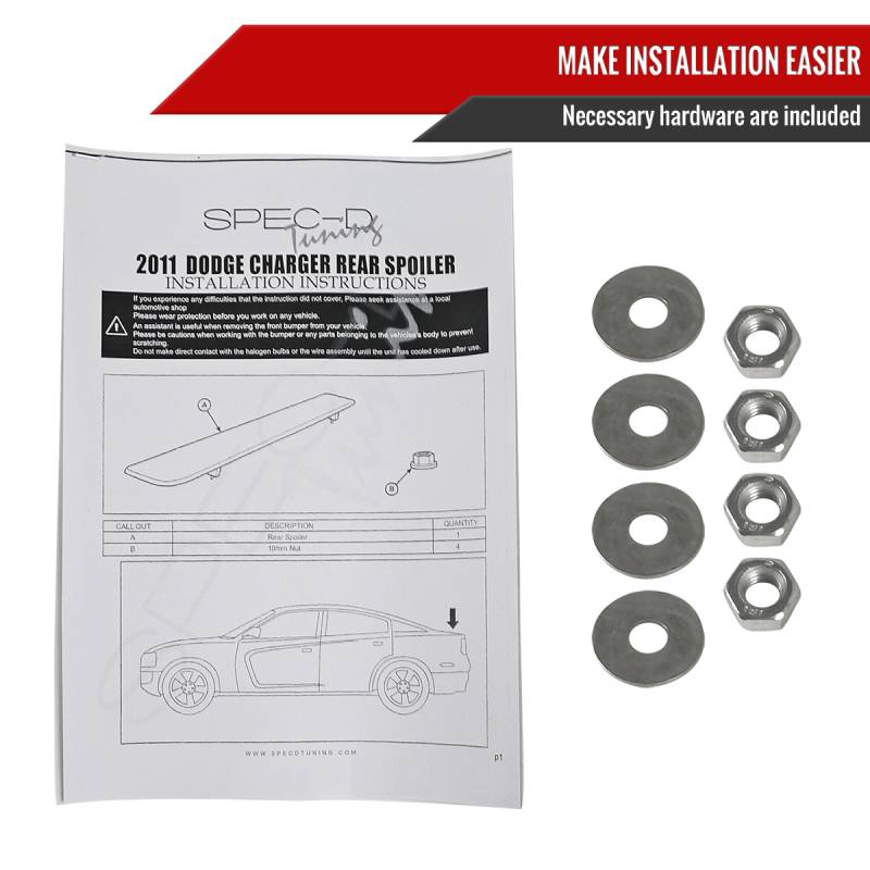 Spec-D 2011-2018 Dodge Charger Black ABS R/T Daytona OE-Style Rear Spoiler Wing