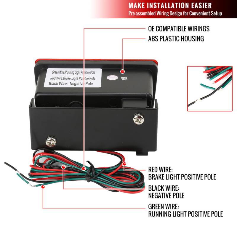 - Comes with (1) 3rd LED tail light in chrome housing with a red lens