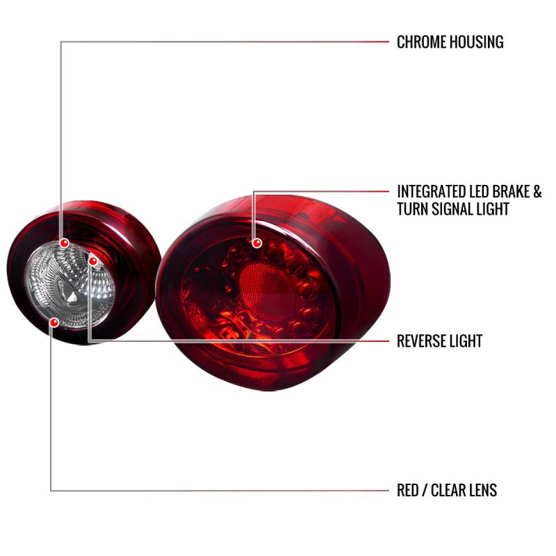 - Comes with 1 pair of chrome housing red/clear lens LED tail lights + 1 pair of trunk reverse lights