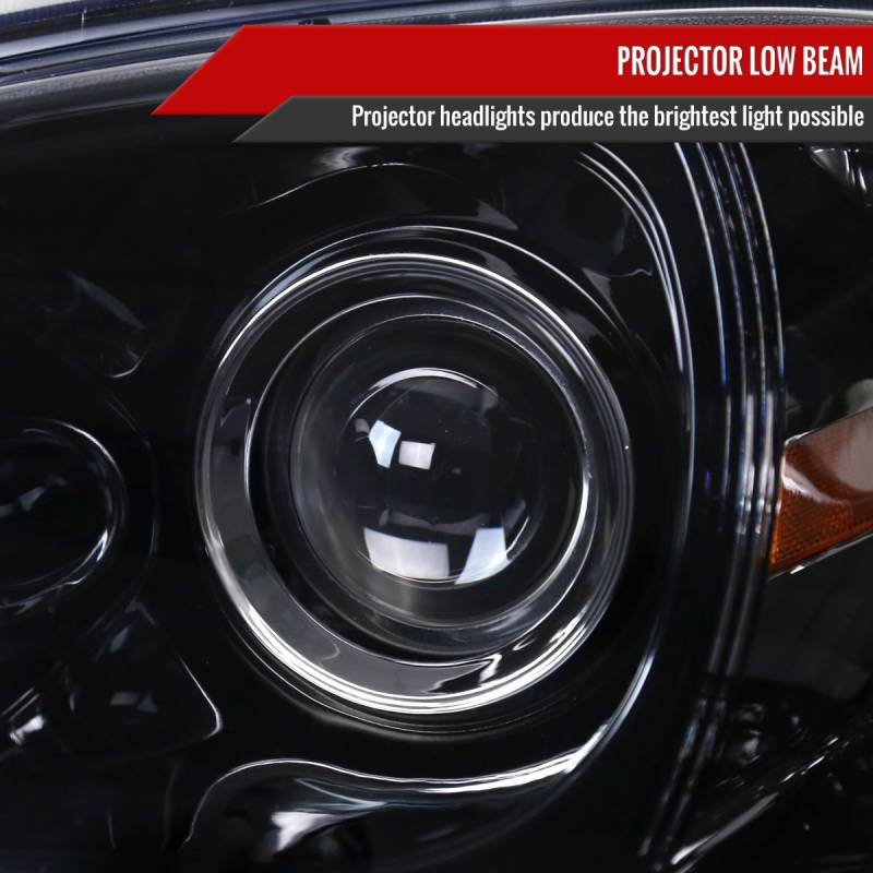 - Glossy black housing, smoke lens projector headlights with SMD LED light strip