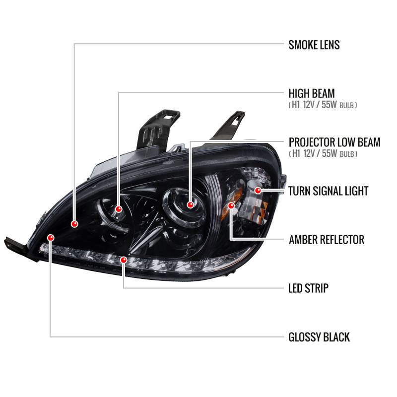 Spec-D 1998-2001 Mercedes Benz W163 ML Class Projector Headlights w/ SMD LED Light Strip (Glossy Black Housing/Smoke Lens)