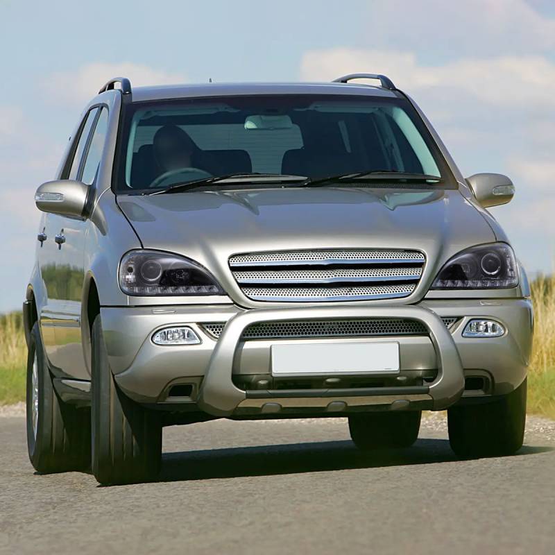 1998-2001 Mercedes Benz W163 ML Class Projector Headlights w/ SMD LED Light Strip (Glossy Black Housing/Smoke Lens)