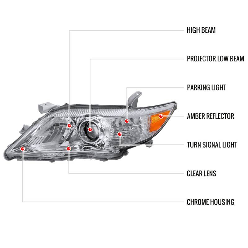 2010-2011 Toyota Camry Projector Headlights w/ Amber Reflectors (Chrome Housing/Clear Lens)