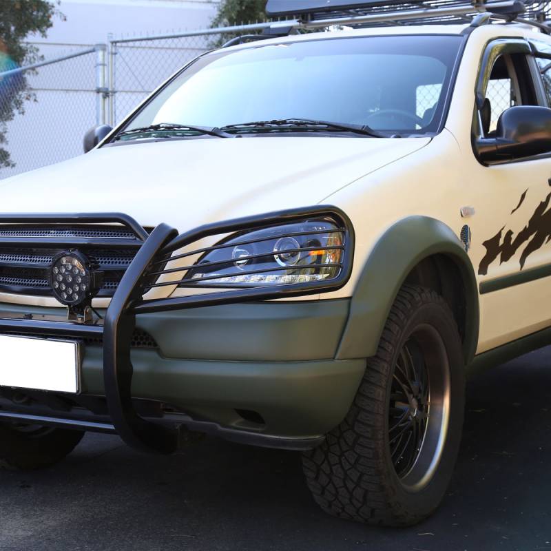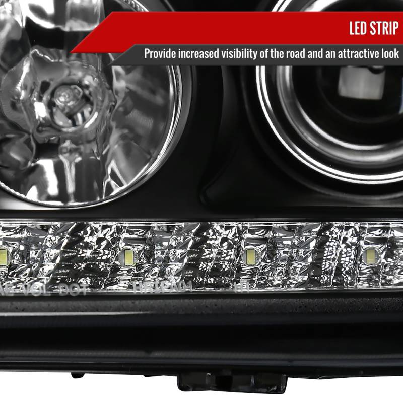 - Matte black housing, clear lens projector headlights with SMD LED light strip