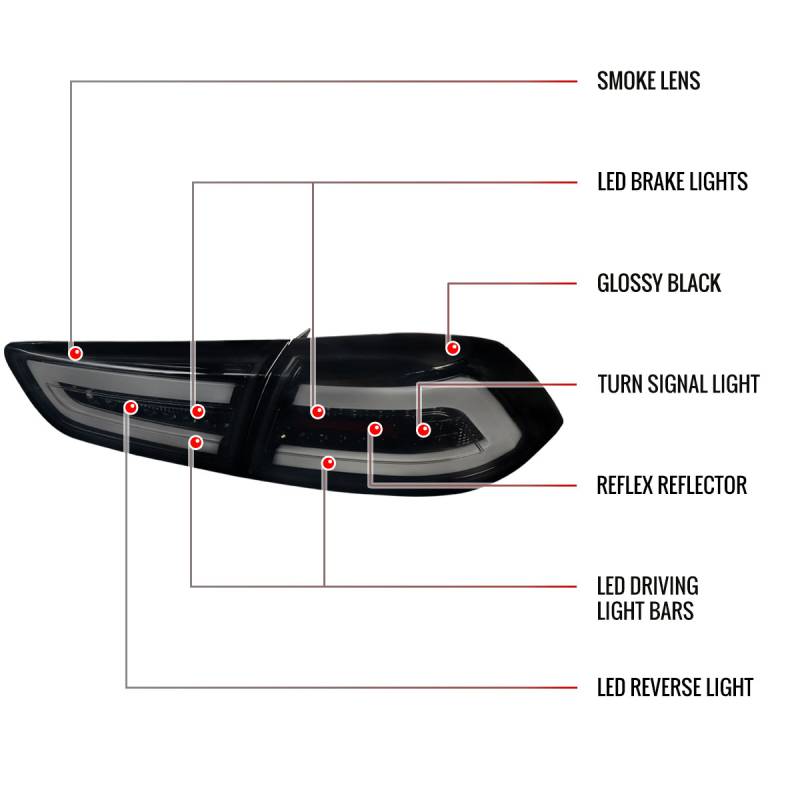 - Comes with 1 pair of glossy black housing dark smoke lens full LED tail lights