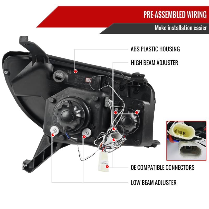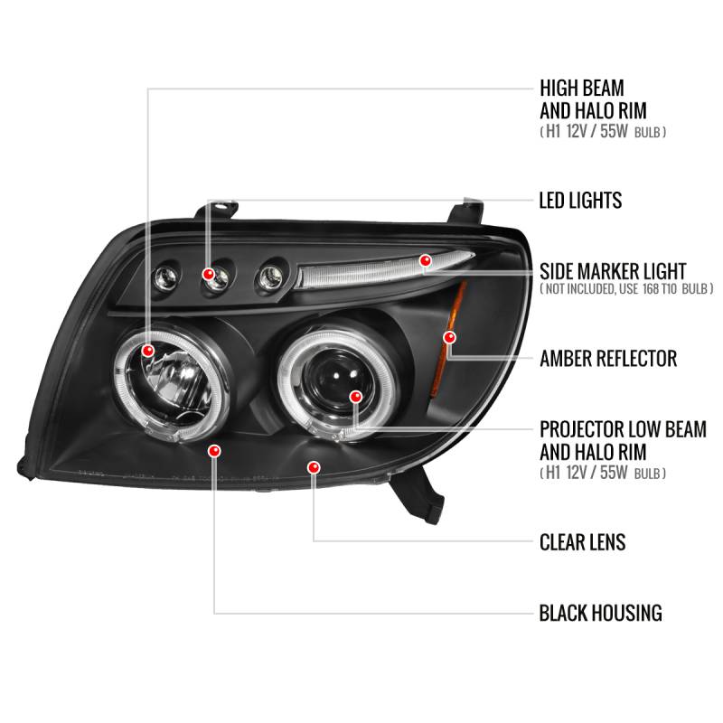 2003-2005 Toyota 4Runner Dual Halo Projector Headlights (Matte Black Housing/Clear Lens)