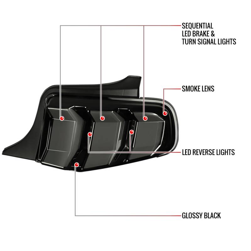 - Comes with 1 pair glossy black housing smoke lens sequential LED tail lights