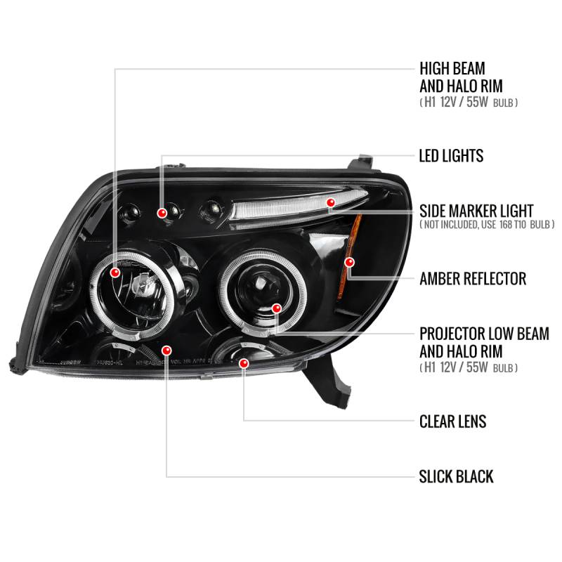 2003-2005 Toyota 4Runner Dual Halo Projector Headlights (Jet Black Housing/Clear Lens)
