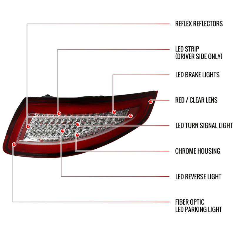 Spec-D 2005-2008 Porsche 911 997 Carrera / 2007-2009 911 997 GT3 LED Tail Lights (Chrome Housing/Red Lens)