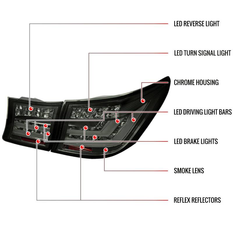 - Comes with 1 pair chrome housing smoke lens LED tail lights & trunk lights