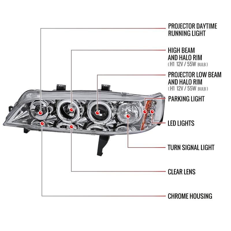 1994-1997 Honda Accord Dual Halo Projector Headlights (Chrome Housing/Clear Lens)