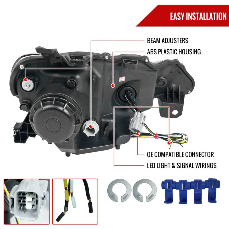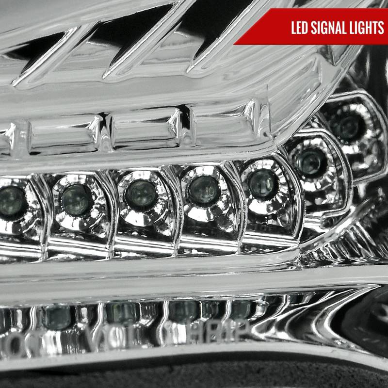 - Comes with chrome housing clear lens projector headlights with LED strip & turn signal lights