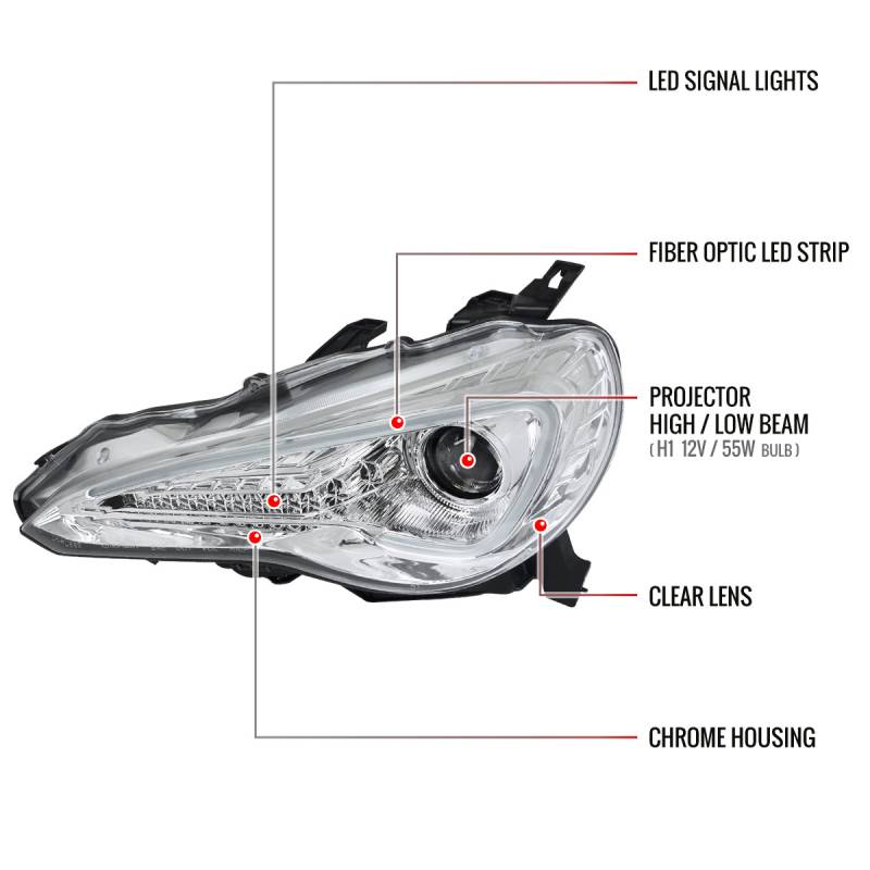 2012-2017 Scion FRS/ Toyota 86 Projector Headlights w/ LED Strip & Turn Signal Lights (Chrome Housing/Clear Lens)