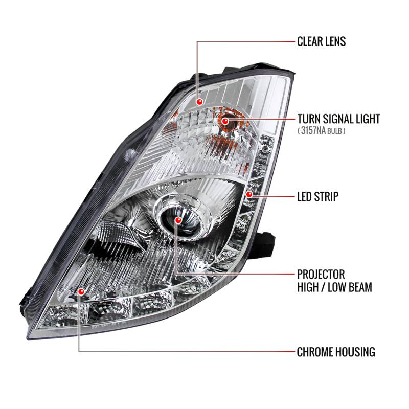 2006-2009 Nissan 350Z SMD LED Light Strip Projector Headlights (Chrome Housing/Clear Lens)