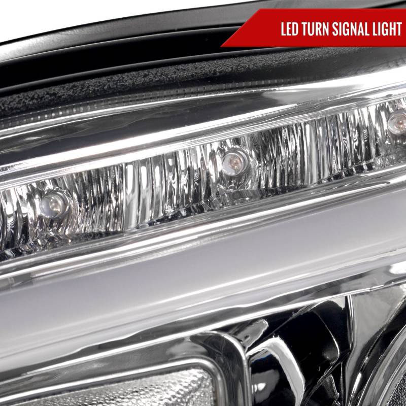 - Comes 1 pair of chrome housing clear lens projector headlights with LED bar & LED turn signal lights