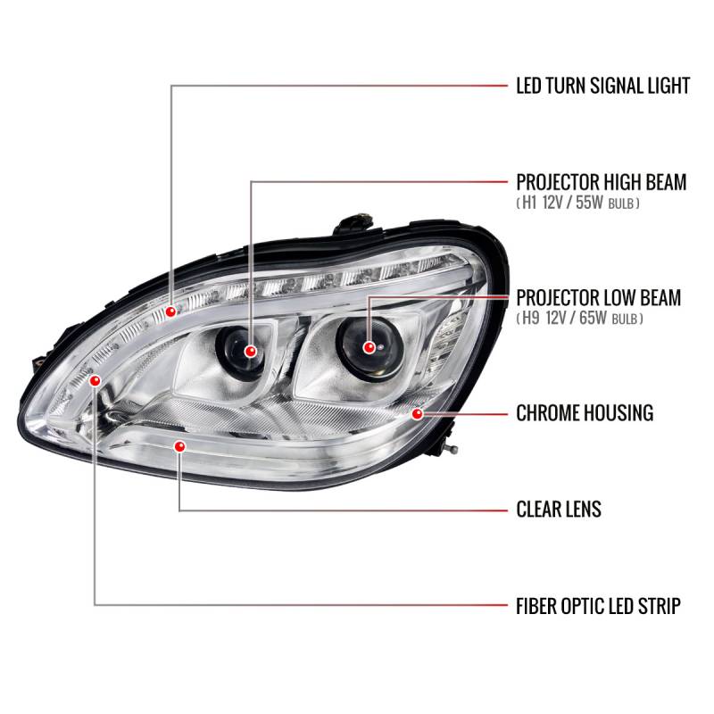 Spec-D 1998-2006 Mercedes Benz W220 S Class LED Bar Projector Headlights w/ LED Turn Signal Lights (Chrome Housing/Clear Lens)