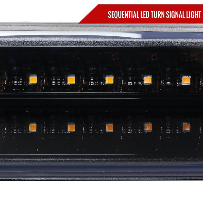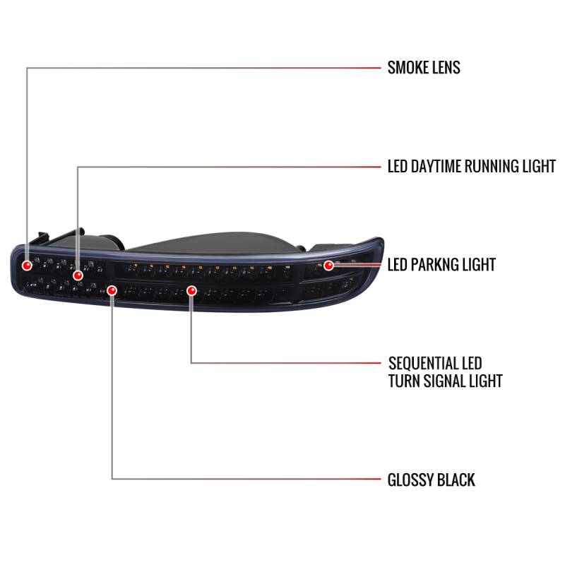 - (1) pair of glossy black housing, smoke lens LED bumper lights with white LED lights & sequential turn signal lights
