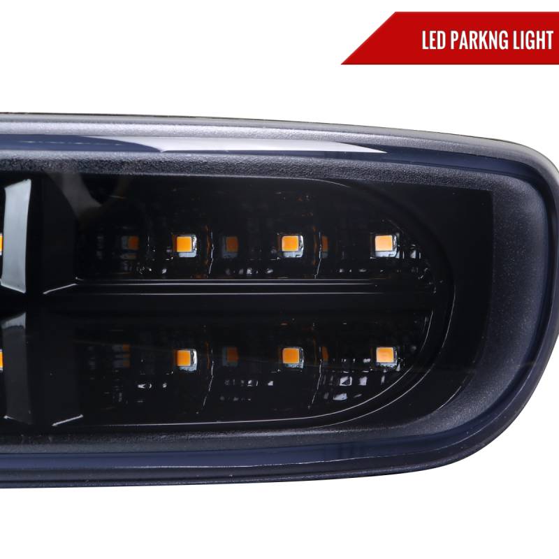 Spec-D 1999-2007 GMC Sierra/Yukon/Yukon XL Bumper Lights w/ Sequential Turn Signal Lights (Glossy Black Housing/Smoke Lens)