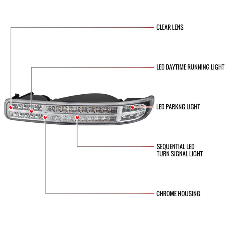 - (1) pair of chrome housing, clear lens LED bumper lights with white LED lights & sequential turn signal lights