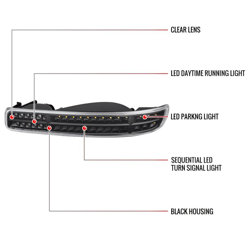 - (1) pair of matte black housing, clear lens LED bumper lights with white LED lights & sequential turn signal lights