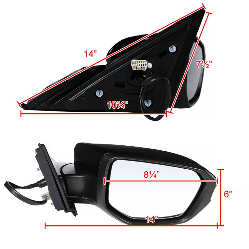2016-2018 Honda Civic Glossy Black 5-Pin Power Adjustable & Heated Side Mirror - Passenger Side Only