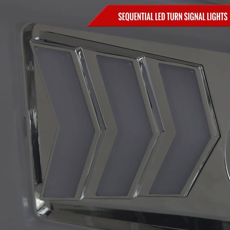 - (1) pair of chrome housing, smoke lens projector headlights with LED C-bar & LED sequential turn signal