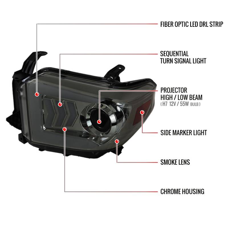 Spec-D 2014-2021 Toyota Tundra LED C-Bar Projector Headlights w/ Sequential Arrow Turn Signals (Chrome Housing/Smoke Lens)