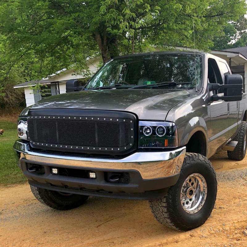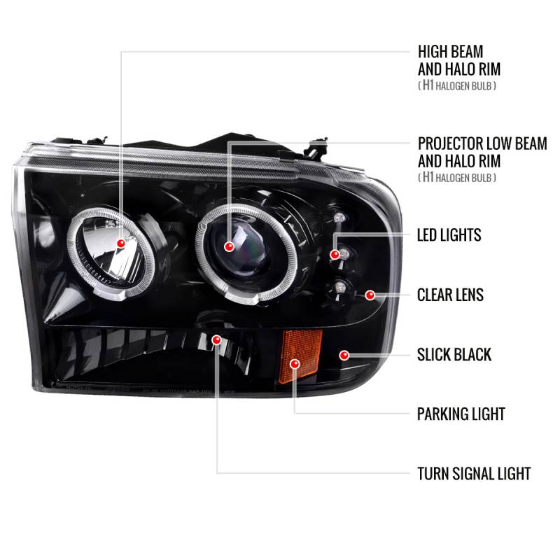 1999-2004 Ford F-250/F-350/F-450/F-550/Excursion Dual Halo Projector Headlights (Jet Black Housing/Clear Lens)