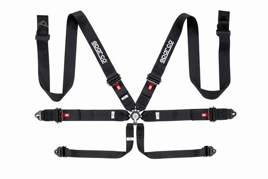 Sparco�s full line of harnesses works in unity with our competition seats. Crafted from high-quality fabric and fitted with durable fasteners, each harness restrains the body for added safety and protection. Our 6-point harness features 3-inch lap and shoulder straps that attach in the center using an aircraft-quality quick-release buckle with integrated anti-submarine belts. The lightweight aluminum adjusters allow for smooth, quick adjustments and perfect clamping. Each belt attaches to the frame using snap-on fixings. Available in three colors each: black, blue and red.