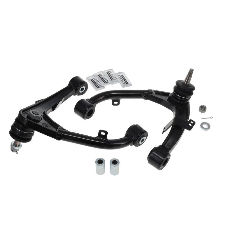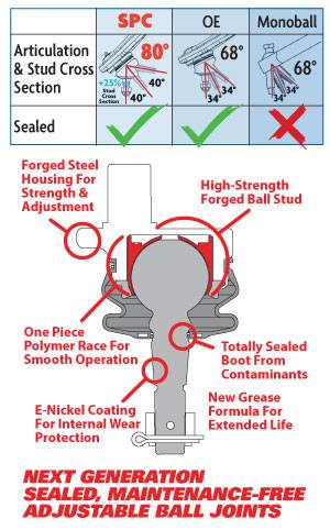 Isuzu D-Max and second-generation Chevy Colorado trucks run out of factory camber and caster adjustment when they are lifted. SPC's heavy duty cast replacement arms provide 0° to +4° caster change and ±3° camber change. SPC's patented truck arms offer increased droop travel and free pivoting bushings in an easy to align remove and replace arm. Featuring our long life maintainable ball joint and SpecRide bushings, this arm is designed to correct alignment angles while maintaining factory ride quality. These remove and replace arms are available in pairs for lifted and off-road applications. Get more droop travel: SPC's arm has improved clearance ot get around the spring bucket when the arm droops, eliminating arm to frame contact on lifted trucks. The maintainable ball joint has an oversized ball and allows more than 80° of articulation to ensure it never binds. SpecRide bushings have free pivot to eliminate any chance of bushing failure seen on many high travel suspensions. Get your drivability back: When you lift your truck you affect caster and camber. SPC's arms have +1° of caster built into them. Using its patented ball joint design the arm will get you 0° to +4° of caster and ±2° of camber. Get your tire where you wantit in the wheel well: Use adjustment in the control arm and on the OE lower cams to maximize alignment angles and move oversized tires forward in the wheel well to minimize or avoid fender trimming.