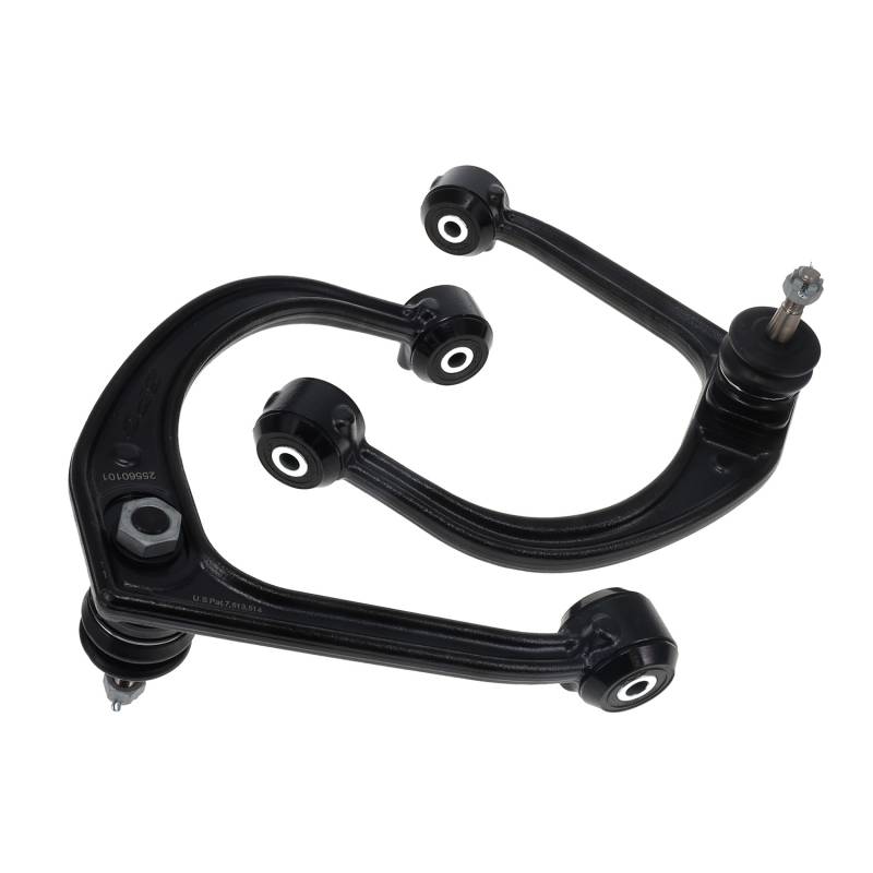 Restore lost caster and camber on your lifted Nissan Titan and Armada to get your drivability back with these adjustable front upper control arms. Or, use them in combination with Titan OE lowers on Xterras and Pathfinders for a wider stance. This pair of arms feature: A patented adjustable ball joint design to dial in Caster and Camber +/-3.0deg. Fully forged steel contruction for maximum strength. Upgraded greasable ball joints. SpecRide bushings with free pivot for extended travel while maintaining factory standards for noise, vibration, and harshness (NVH). On the adjustable ball joint SPC uses hex chromate free finish and offers a 700hr salt spray test for the best corrosion protection available.