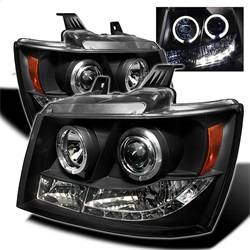 (Spyder Signature) Chevy Suburban 1500/2500 07-14 / Chevy Tahoe 07-14 / Avalanche 07-14 Projector Headlights - LED Halo - LED ( Replaceable LEDs ) - Black - High H1 (Included) - Low H1 (Included)