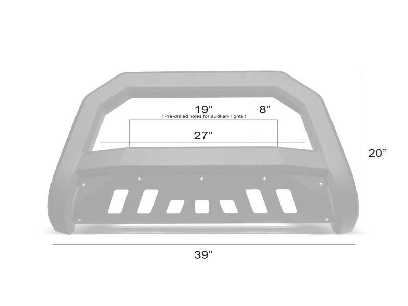 Armordillo AR Series Bull Bar, If you're looking to protect the front end of your rig against the elements and impact of minor collisions without sacrificing the look of your new stylish front grille, the AR series bull bar with its aggressive angular design is just the thing you need. Unlike regular tubular bull bars, Armordillo AR series bull bars will not hide your front grille or a large portion of your front bumper, while keeping the front-end protection at a high level. Plus, the mesh styled skid plate doesn't restrict airflow to the radiator and engine preventing its overheating. Arm your off-road beast with Armordillo, an industry-leading manufacturer of top-of-the-line truck accessories and parts. Years of ingenious engineering and passion for the world's toughest trucks has been poured out into providing hardcore off-road products designed to turn your beefy companion into the embodiment of sleekness, edginess, and aggression. Armordillo offers bull bars, step bars, fender flares, truck bed rails, trailer hitches and some of its unique products. Pre-Runner bumper guards, AR drop steps, lockers, and bull bars. You can count on Armordillo to bring you impeccably strong and durable parts combining brutal appeal with high-end elegance. The brand's bull bars, grilles, fender flares and side step bars are a sure way to instantly give your off-road warrior a more sharp, mean look along with unmatched comfort and protection against the rage of the trails. So, if you are looking to improve your vehicle's stance and fortify its defenses to own the dust with confidence, Armordillo is the answer to all your needs.