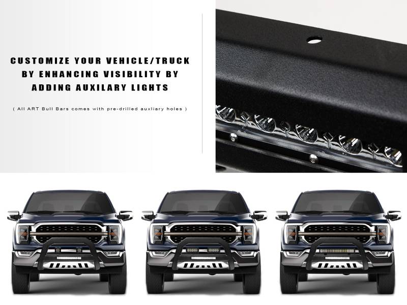 Title: Armordillo 2019-2022 Chevy Silverado 1500 / 2019-2022 GMC Sierra 1500 AR Bull Bar w/LED - Matte Black w/ Aluminum Skid Plate
