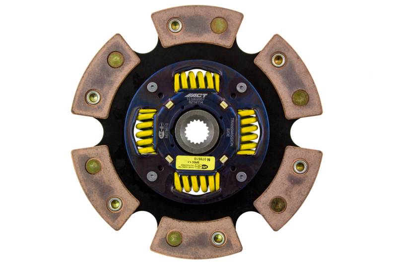 6214114 is a 6-pad spring-centered race discs made with high quality ceramic friction materials. The engagement is harsher, but shifting is faster. The heavy duty torsional dampening springs are stronger, in most cases, than standard springs and are provided in the best sizes and spring rates to suit the application. The 6-pad, spring-centered disc is recommended for larger clutch sizes to absorb more heat and for smoother engagement.