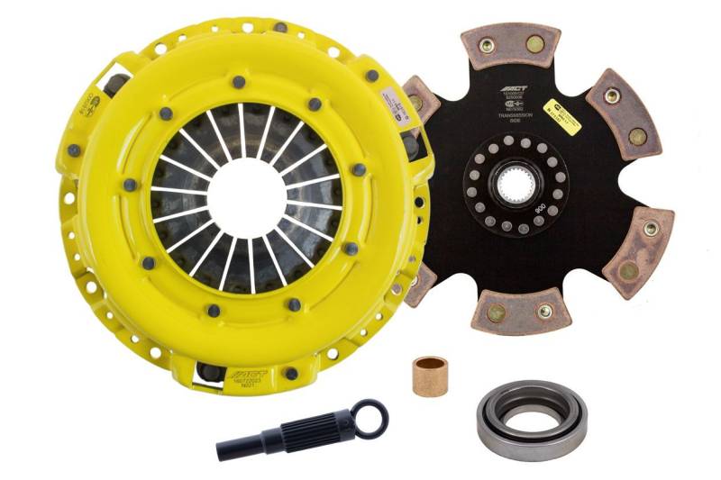 NZ1-HDR6 kit features ACT's most popular Heavy Duty pressure plate. ACT Heavy Duty pressure plates use exclusive diaphragm design to increase clamp load, reduce deflection and maximize clutch life. All diaphragms endure a four-stage, heat-treating process for unparalleled performance. ACT pressure plates have precision cover stampings to provide rigidity and consistency. ACT's 6-pad rigid race discs are made with high quality, ceramic friction materials. The chrome-moly hub is heat-treated for strength and durability. The lightweight, rigid design allows for quicker shifts and smooth, trouble-free service. With the 6-pad rigid race disc, engagement is harsher, but shifting is faster. The 6-pad rigid race disc is recommended for larger clutch sizes to absorb more heat.