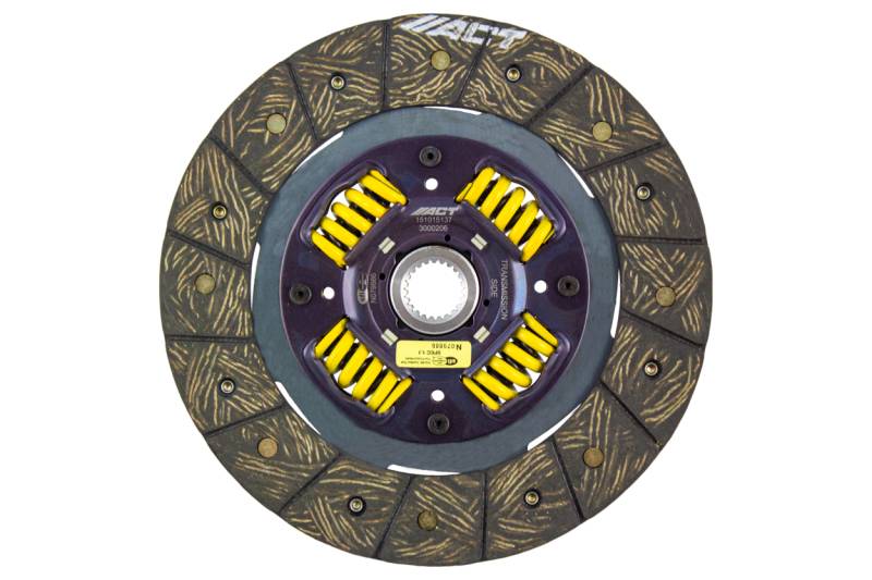 3000206 is a performance street disc and the most popular disc purchased. It features premium organic materials with high copper content for better heat transfer. Performance street discs allow for quicker shifting and smooth engagement. These discs feature a reduced marcel for faster shift action to complement ACT pressure plates. ACT spring-centered assemblies use bushings and cone springs similar to factory clutch discs. This creates frictional dampening, which improves clutch life and reduces noise. Quiet operation with increased strength and reliability.