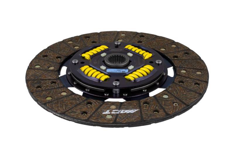 3001801 is a performance street disc and the most popular disc purchased. It features premium organic materials with high copper content for better heat transfer. Performance street discs allow for quicker shifting and smooth engagement. These discs feature a reduced marcel for faster shift action to complement ACT pressure plates. ACT spring-centered assemblies use bushings and cone springs similar to factory clutch discs. This creates frictional dampening, which improves clutch life and reduces noise. Quiet operation with increased strength and reliability.