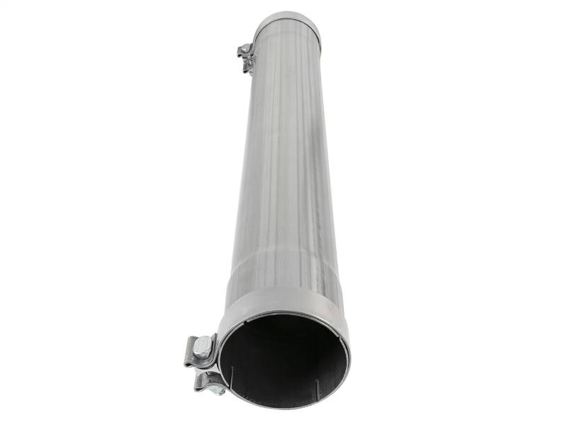 Bring the maximum power out of your exhaust with the aFe Power Muffler-Delete Pipe. This pipe is constructed out of 409 stainless steel and is used to eliminate the 4" In/Out muffler used in most factory or performance 4" exhaust systems. You will love the aggressive exhaust note of a 4" system with no muffler while maximizing exhaust flow, throttle response and performance. Muffler-Delete Pipe Specifications: 4 IN ID x 24 IN L x 30 IN Overall Length Leak-Free Seal: Includes 2 Torca AccuSeal exhaust clamps for a long-lasting, secure 360-degree sealing surface. Emissions Disclaimer: This product does not require a CARB EO#