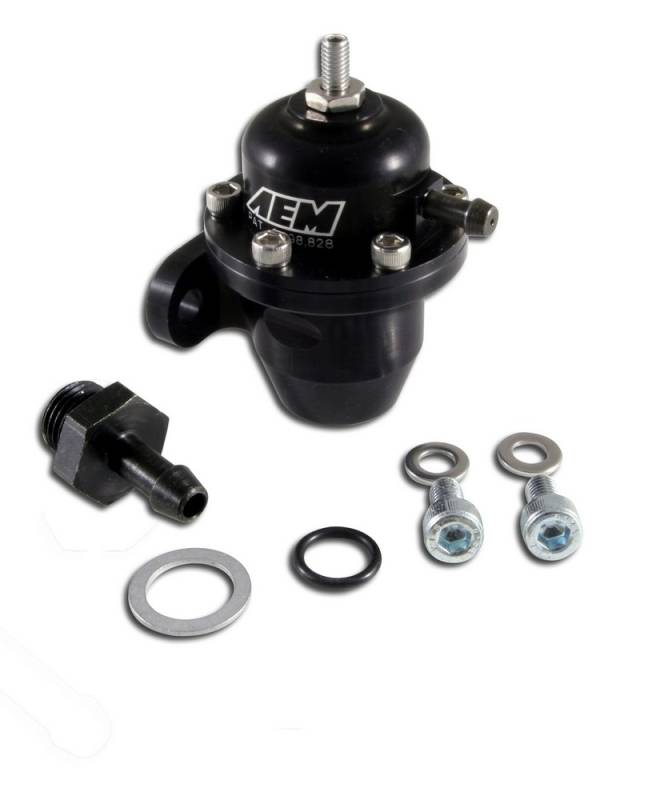 AEM's Honda/Acura Adjustable Fuel Pressure Regulators are capable of supporting enough fuel flow for engines up to 1000 horsepower. Our patented interchangeable discharge ports enable the regulator's output to match the output of any fuel pump. A single large discharge orifice is included. AEM includes a custom barb fitting to accommodate the factory fuel hose and the base of each regulator is tapped to accept a -6 AN or 9/16"x18 fittings.