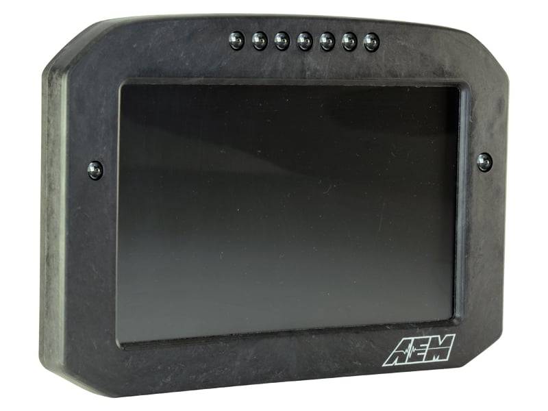 AEM CD7 Carbon Digital Flat Panel Displays have a compact enclosure that makes them perfect for flush mount installation or in-dash installations with tight tolerances. They include all of the robust features found in the original CD-7 Carbon Dash, but do not have buttons or an LED shade hood built into the enclosure.