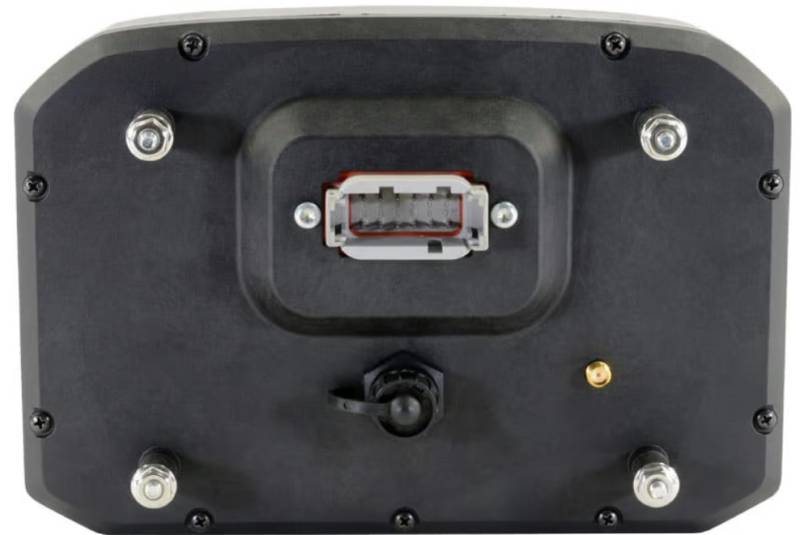 CD-7 Carbon Digital Dash Displays feature a full-color, daylight readable screen surrounded by a tough, lightweight flow-molded carbon fiber composite housing. Seven ultra-bright LEDs span the top of the display housing for RPM and shift light indication. Users can program them to ascend in specific increments based on RPM range and flash when it is time to shift. Brightness is user programmable on the fixed color LEDs. Two large buttons are included on the face of the display, allowing easy page changing and memory resetting even with driving gloves on. These button functions are included in the supplied rear connector, allowing the user to mount remote buttons. Two additional programmable LEDs are located above the toggle buttons on the top of the housing on either side of the integrated LED shift lights.