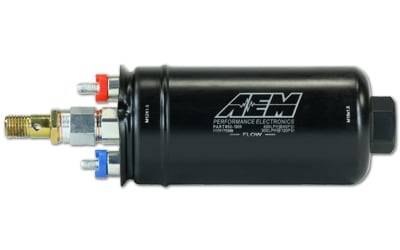 AEM 400LPH High Pressure Inline Fuel Pump - M18x1.5 Female Inlet to M12x1.5 Male Outlet