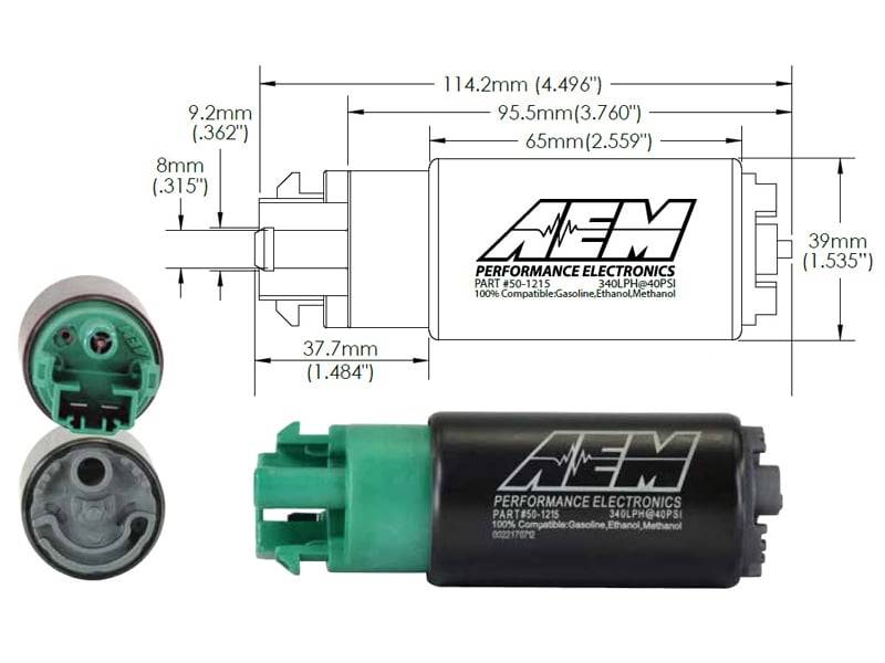 The AEM 340LPH E85-Compatible High Flow In-Tank Fuel Pump is designed for in-tank mounting on high performance naturally aspirated and forced induction vehicles. It features a compact 39mm diameter that fits most applications and an offset inlet design that eases installation.